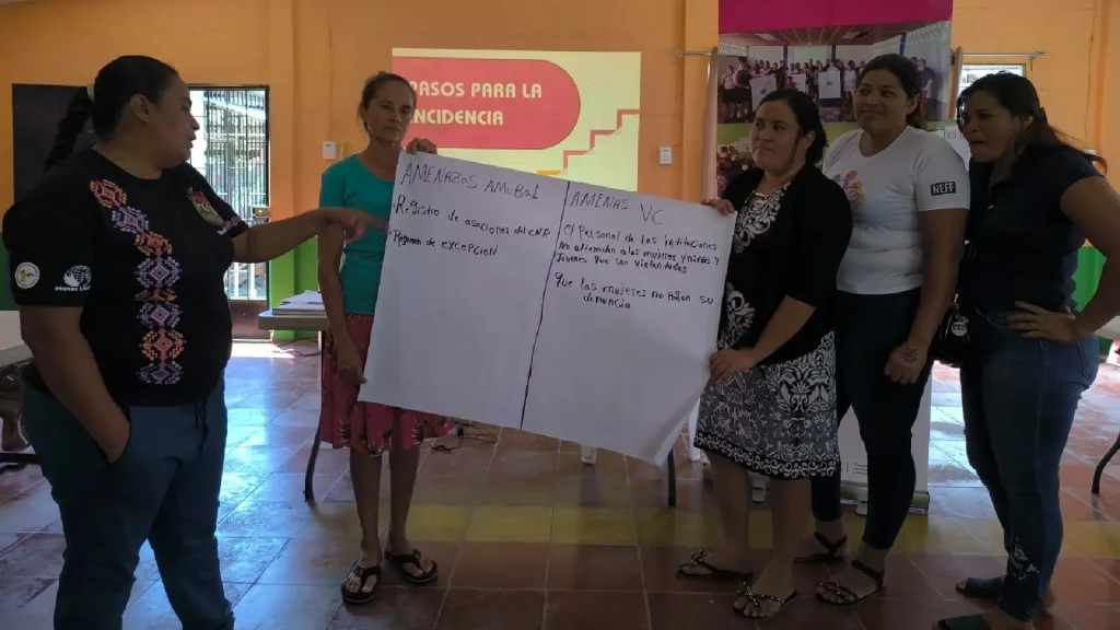 También se profundizó en el análisis del contexto mediante la aplicación de la herramienta FODA, lo que permitió identificar fortalezas, oportunidades, debilidades y amenazas relacionadas con el trabajo organizativo y la realidad que enfrentan las mujeres en el territorio. Asimismo, se compartieron los principales pasos para desarrollar procesos de incidencia que permitan impulsar propuestas desde las comunidades.